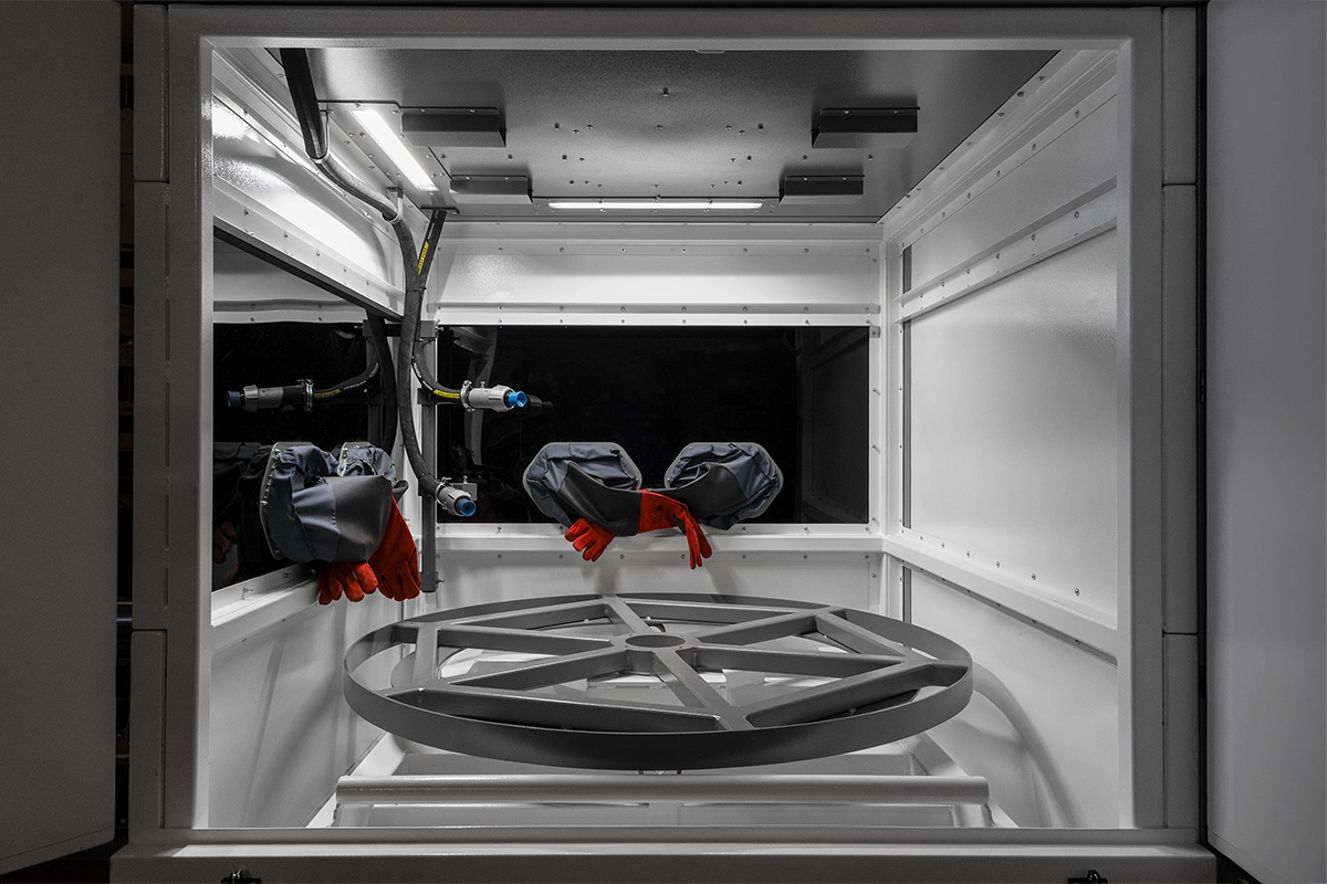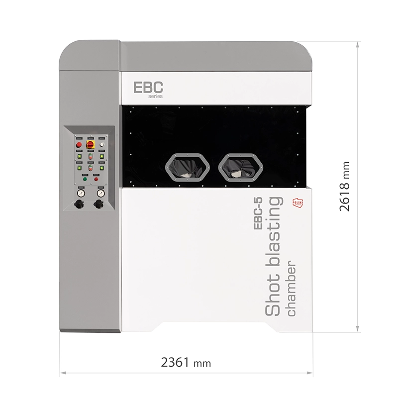 Komory śrutownicze serii EBC przeznaczone są do przemysłowego oczyszczania strumieniowo-ściernego dużych i/lub ciężkich detali. Obróbka w komorach śrutowniczych EBC polega na rozpędzaniu za pomocą energii strumienia sprężonego powietrza ziaren ściernych i mikroskrawanie obrabianej powierzchni.
