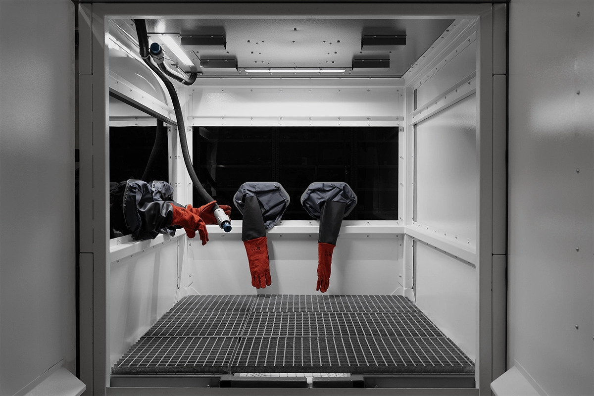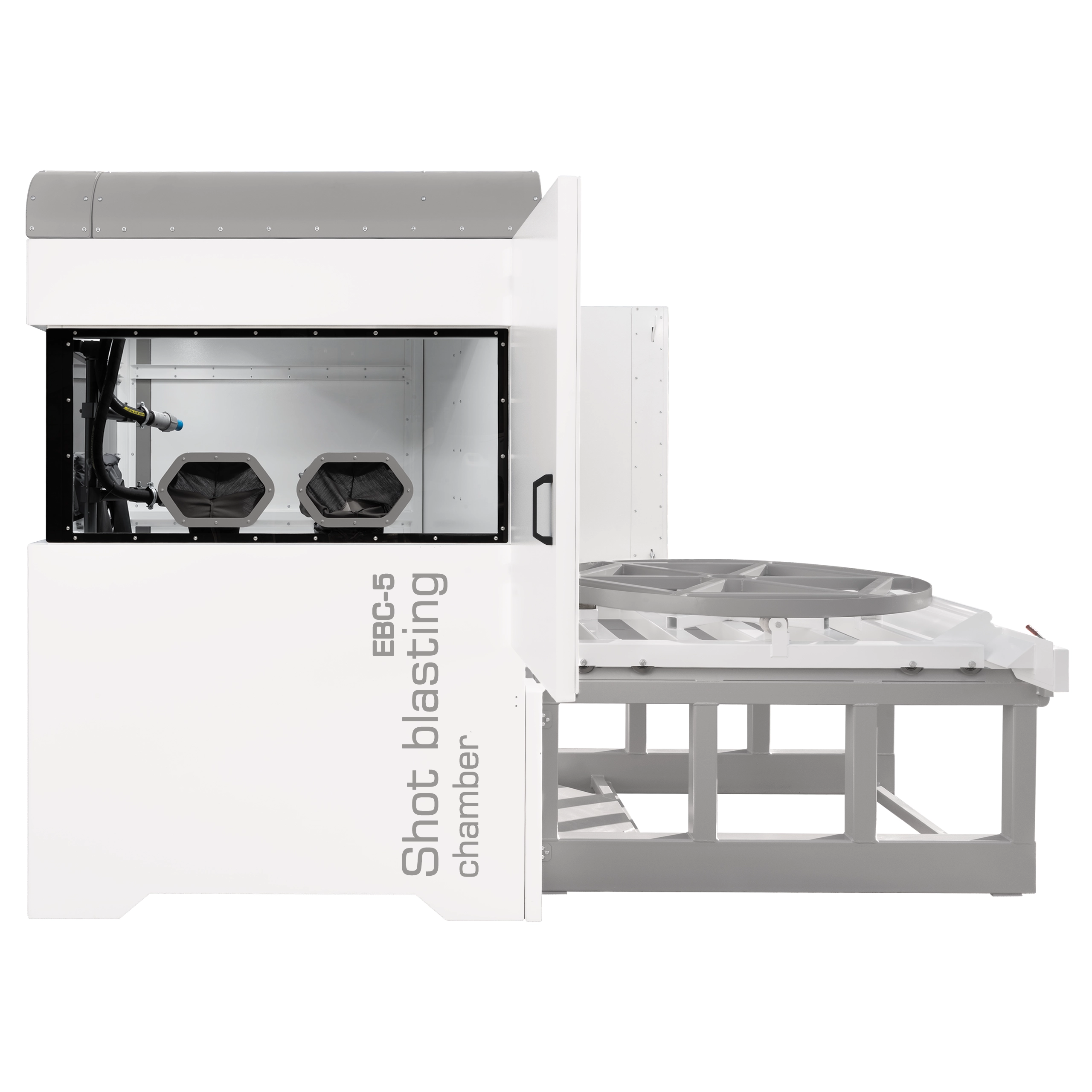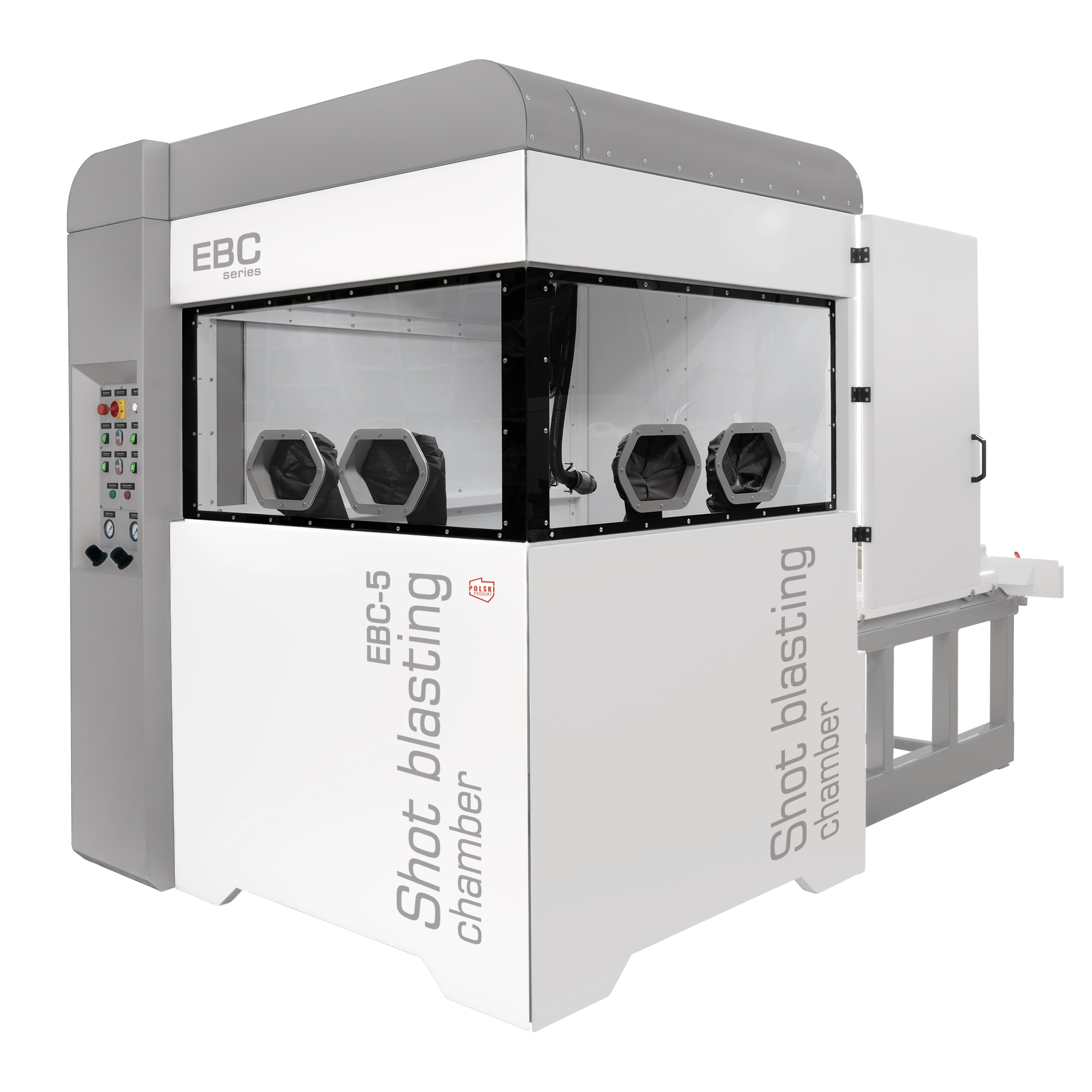 Komory śrutownicze serii EBC przeznaczone są do przemysłowego oczyszczania strumieniowo-ściernego dużych i/lub ciężkich detali. Obróbka w komorach śrutowniczych EBC polega na rozpędzaniu za pomocą energii strumienia sprężonego powietrza ziaren ściernych i mikroskrawanie obrabianej powierzchni.