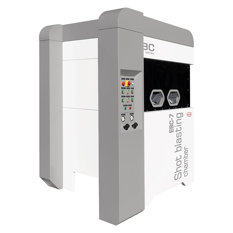 Komory śrutownicze serii EBC przeznaczone są do przemysłowego oczyszczania strumieniowo-ściernego dużych i/lub ciężkich detali. Obróbka w komorach śrutowniczych EBC polega na rozpędzaniu za pomocą energii strumienia sprężonego powietrza ziaren ściernych i mikroskrawanie obrabianej powierzchni.