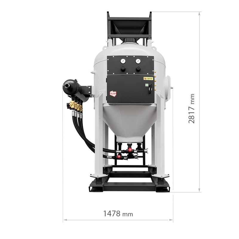 Hydropiaskarki/sodowarki ciśnieniowe serii SBS-H są mobilnymi urządzeniami przeznaczonymi do najbardziej wymagających procesów bezpyłowej obróbki powierzchni z wykorzystaniem strumienia sprężonego powietrza i ziaren ściernych w osłonie wodnej. Ze względu na korzystną, stożkową konstrukcję dna ułatwiające przemieszczanie się materiału ściernego oraz możliwość zastosowania różnej konstrukcji zaworów ścierniwa nadają się do pracy ze wszelkiego rodzaju materiałami ściernymi o kulistych, obłych i/lub ostrokrawędziowych kształtach oraz dowolnych wymiarach ziaren. Oczyszczarki serii SBS-H ograniczają powstawianie zapylenia do 97% w stosunku do oczyszczarek konwencjonalnych i umożliwiają jednoczesną pracę sześcioma dyszami roboczymi (w zależności od modelu).