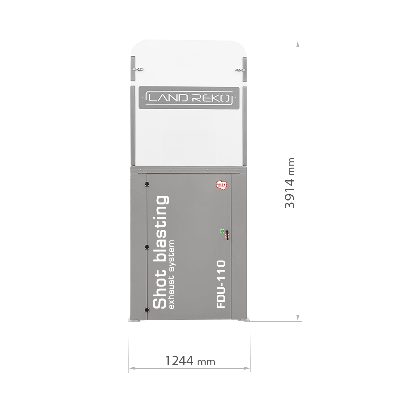TAGI: systemy filtracji i odzysku | systemy filtracji | systemy odciągowe | odciągi przemysłowe | odciąg do komory śrutowniczej FDU-110 | producent urządzeń do obróbki strumieniowo-ściernej i zbiorników ciśnieniowych Land Reko®